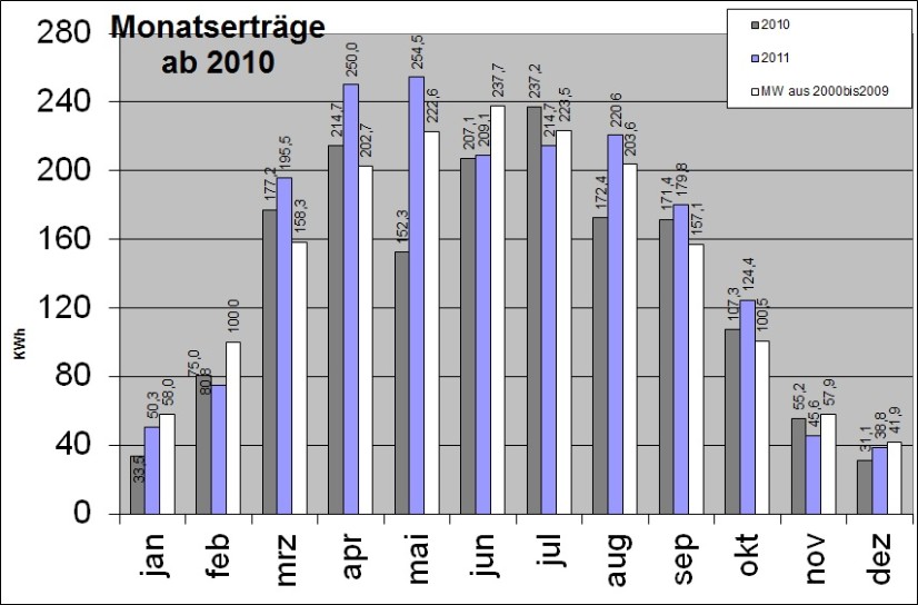 Ab 2010 vergleiche ich die Monatserträge mit den Mittelwerten der vergangenen 10 Jahre